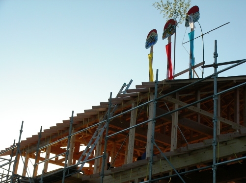 どうですか? タル木とミズヌキ、ウデ木、鼻桁は米松。 裏板は杉板です。
